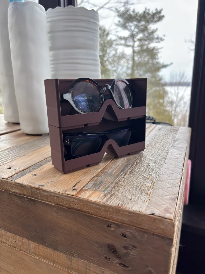 I have a bunch of reading glasses all over the place. These stackable boxes cleaned up a few messy shelves.